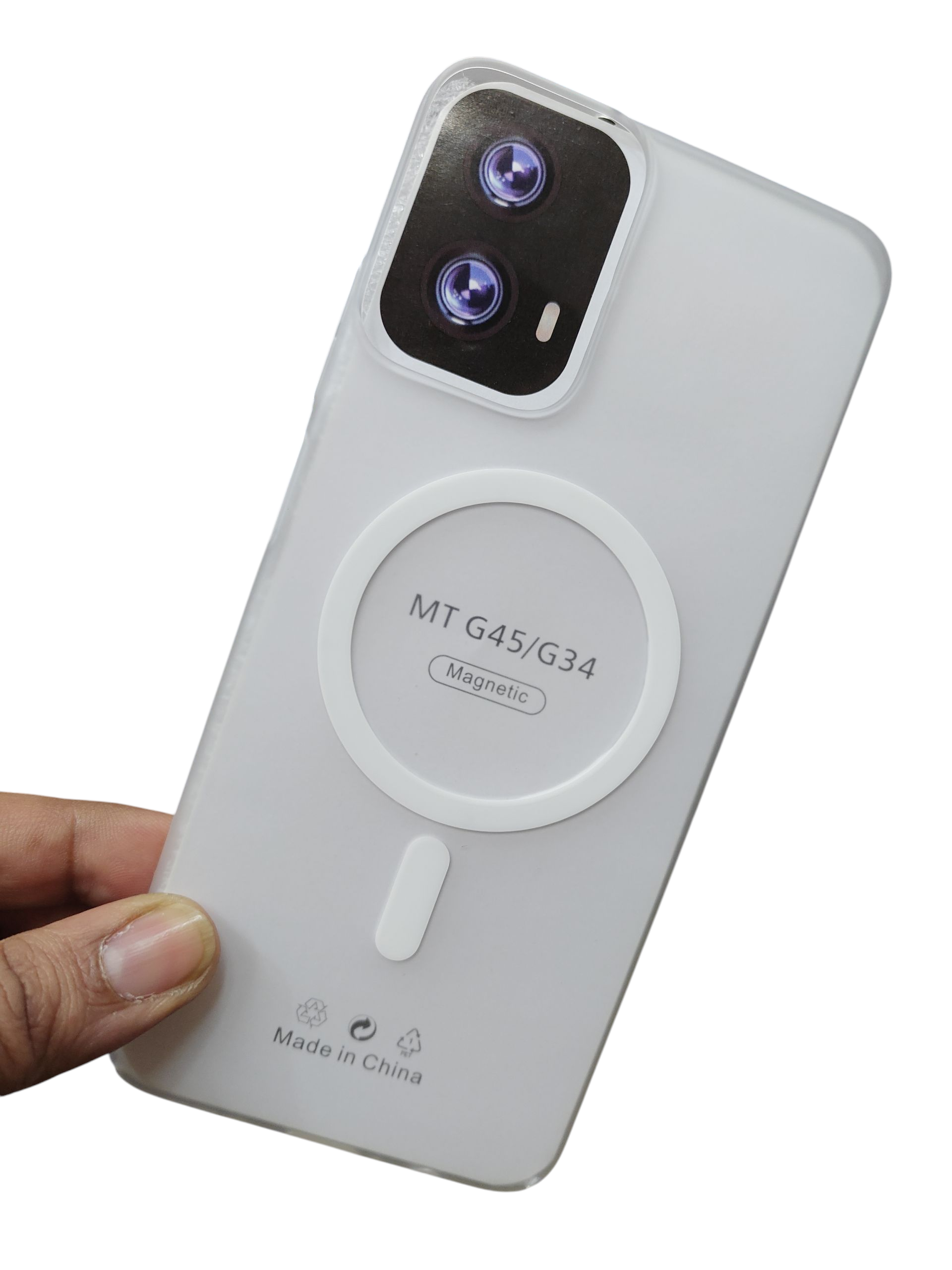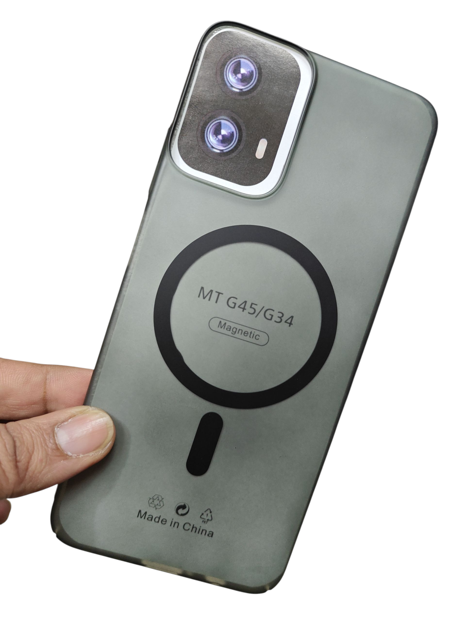 Introducing Motorola Moto G45 / G34 our Premium Quality MagSafe Hard Plastic Back Cover Case, meticulously designed to provide unparalleled protection and style for your device. Engineered with durable hard plastic, this case not only shields your phone from everyday bumps and scratches but also seamlessly integrates with MagSafe technology for effortless wireless charging and accessory compatibility. Its sleek design ensures that your device maintains a slim profile while providing a comfortable grip, making it the perfect blend of functionality and elegance. Elevate your phone's style while keeping it safe with this premium cover.