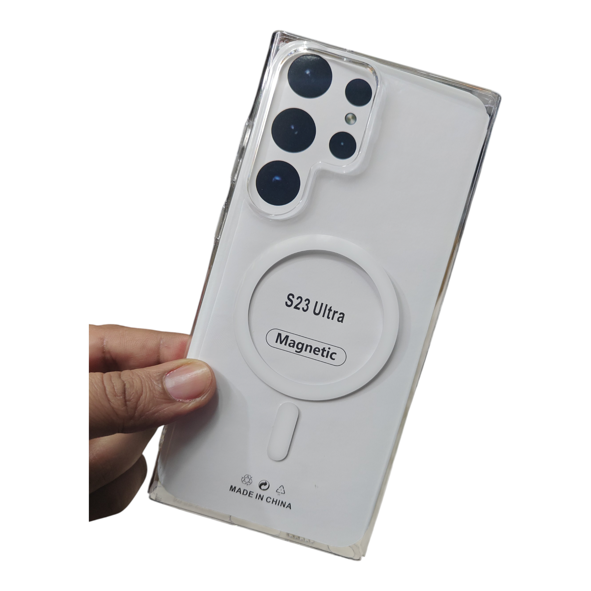 Introducing the Samsung Galaxy S23 Ultra 5G Anti Yellow Premium Quality MagSafe Crystal Clear Hard Plastic Back Cover Case, the ultimate blend of style and protection for your smartphone. This case is crafted from durable hard plastic, ensuring that your device remains safe from scratches and drops while showcasing its sleek design. The crystal-clear finish allows the elegance of your Mobile Phone to shine through, while the innovative MagSafe compatibility ensures seamless attachment of your favorite accessories. Lightweight and slim, this case provides robust defense without compromising on portability. Elevate your smartphone experience with this premium protective accessory.