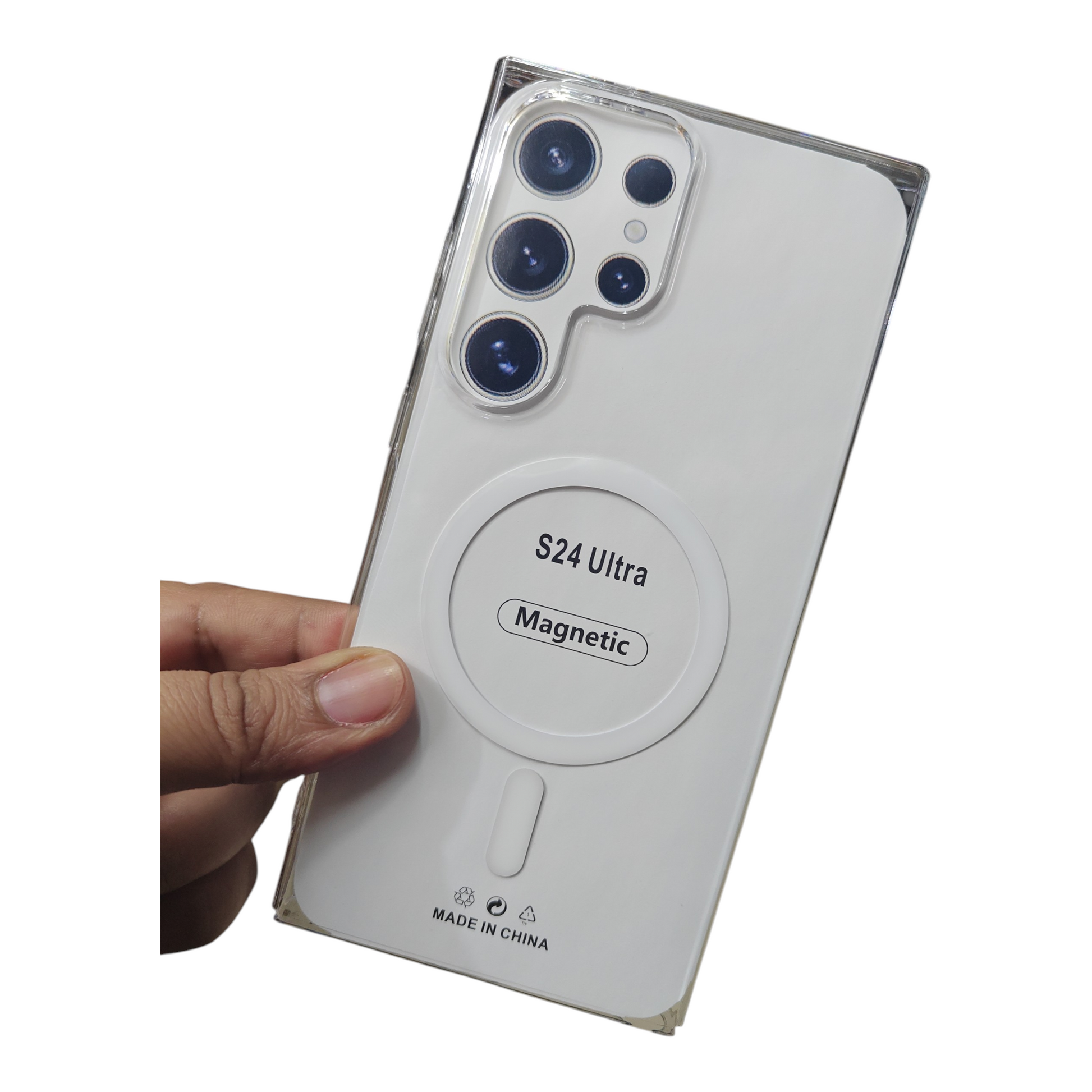 Introducing the Samsung Galaxy S24 Ultra 5G Anti Yellow Premium Quality MagSafe Crystal Clear Hard Plastic Back Cover Case, the ultimate blend of style and protection for your smartphone. This case is crafted from durable hard plastic, ensuring that your device remains safe from scratches and drops while showcasing its sleek design. The crystal-clear finish allows the elegance of your Mobile Phone to shine through, while the innovative MagSafe compatibility ensures seamless attachment of your favorite accessories. Lightweight and slim, this case provides robust defense without compromising on portability. Elevate your smartphone experience with this premium protective accessory.